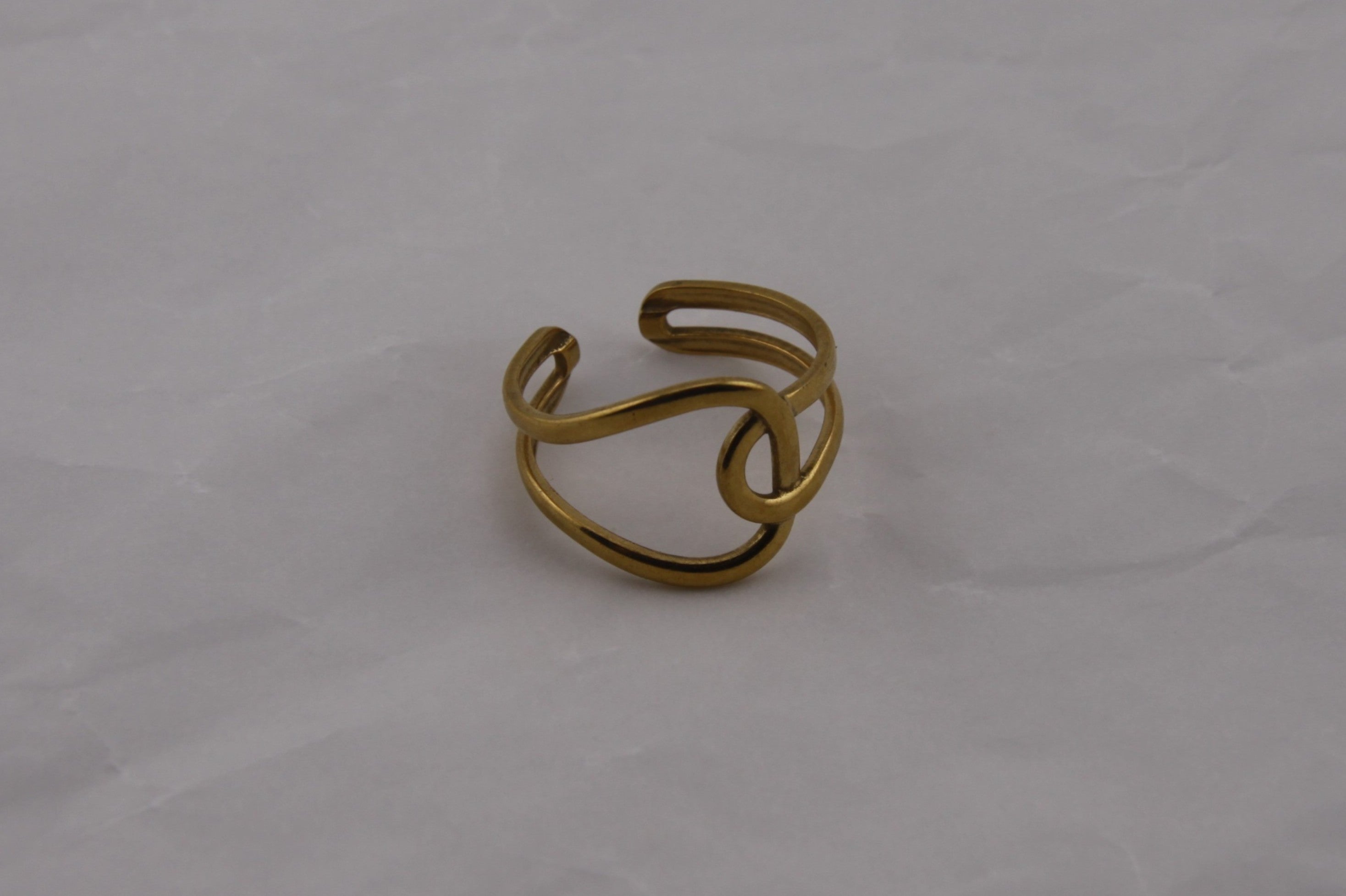 Este anel é uma peça de design puro. Uma linha dourada contorna o dedo, contorcendo-se num nó orgânico. Não tem símbolos. Não tem padrões. Tem uma forma bem resolvida, elegante e com personalidade. Uma escolha perfeita para quem prefere peças que falam através do design.