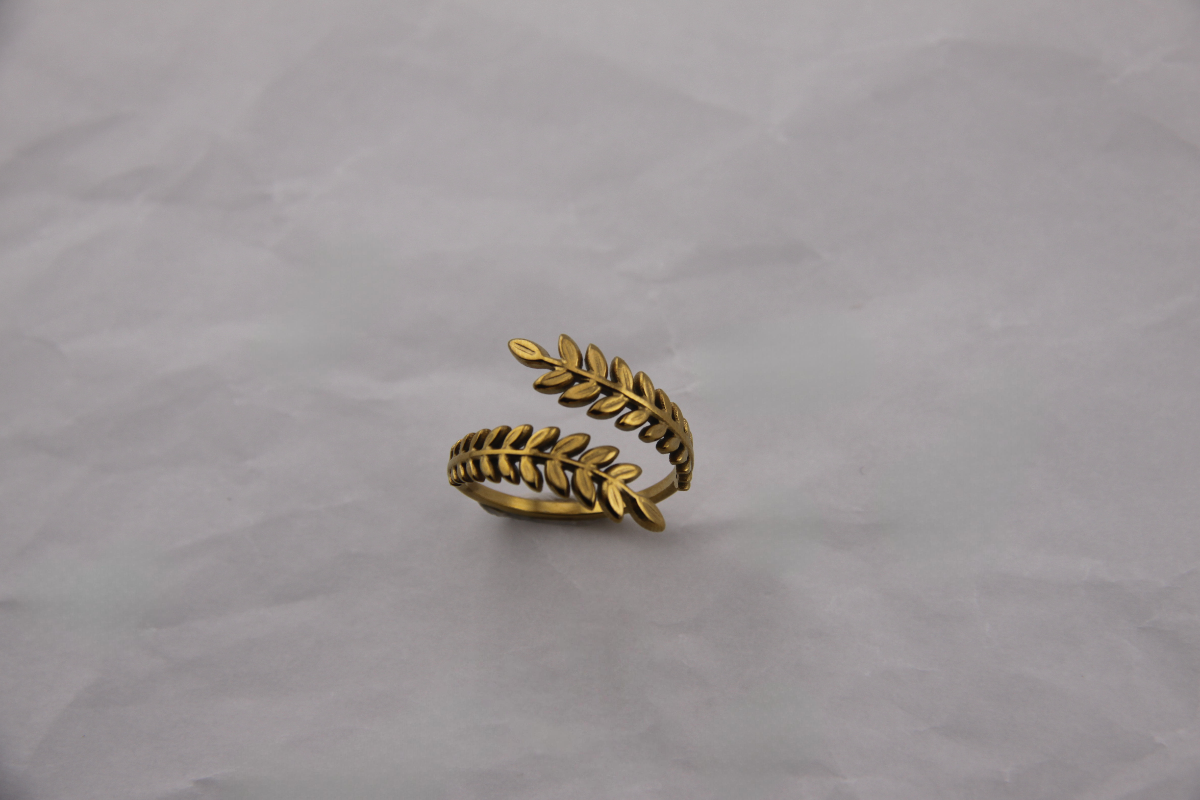 Inspirado nas coroas de louros da antiguidade, este anel traz o espírito da vitória para o dia-a-dia. A estrutura aberta envolve o dedo com duas hastes de folhas simétricas, desenhadas com precisão e volume. O acabamento dourado tem um tom envelhecido subtil, que lhe dá carácter e distingue-o das peças mais comuns.