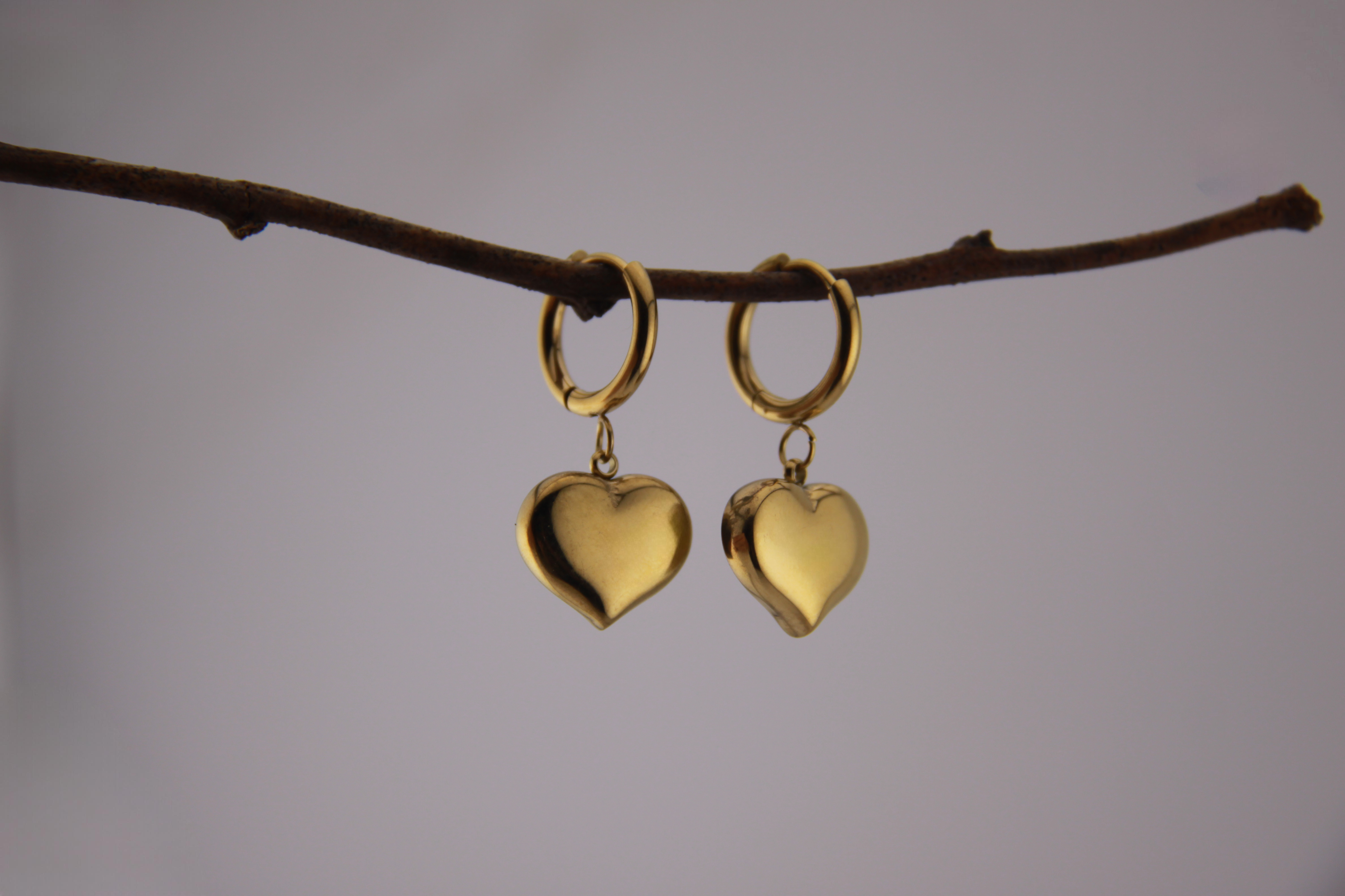Estes brincos em forma de coração são clássicos com um twist moderno. O dourado quente concede-lhes um brilho subtil enquanto o movimento do pendente acrescenta um toque elegante.