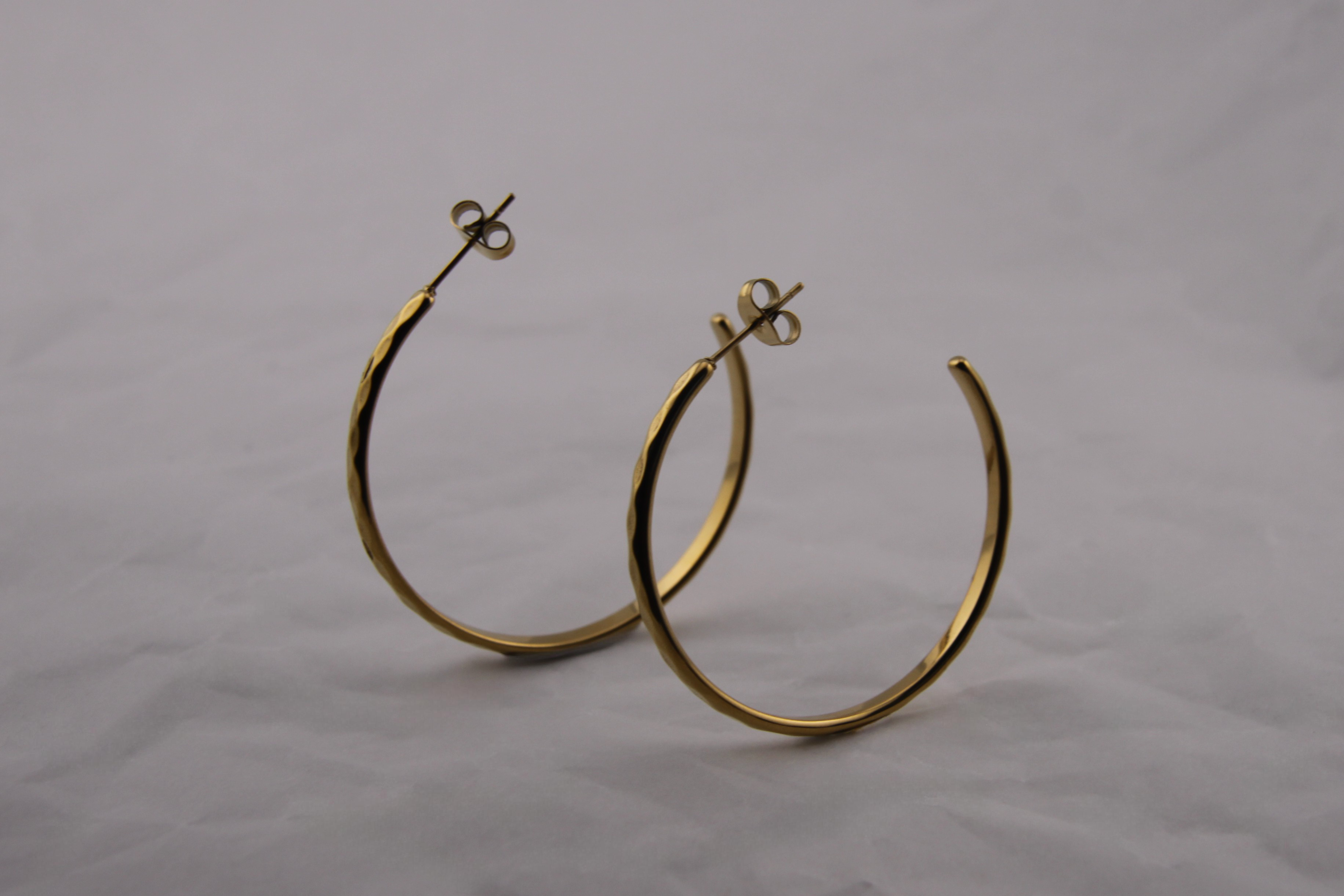 Argolas em aço inoxidável dourado com acabamento liso, que lhes confere um visual moderno e elegante. Equipadas com fecho borboleta para maior segurança e conforto no uso diário. O design versátil destas argolas faz delas um acessório indispensável no dia-a-dia.