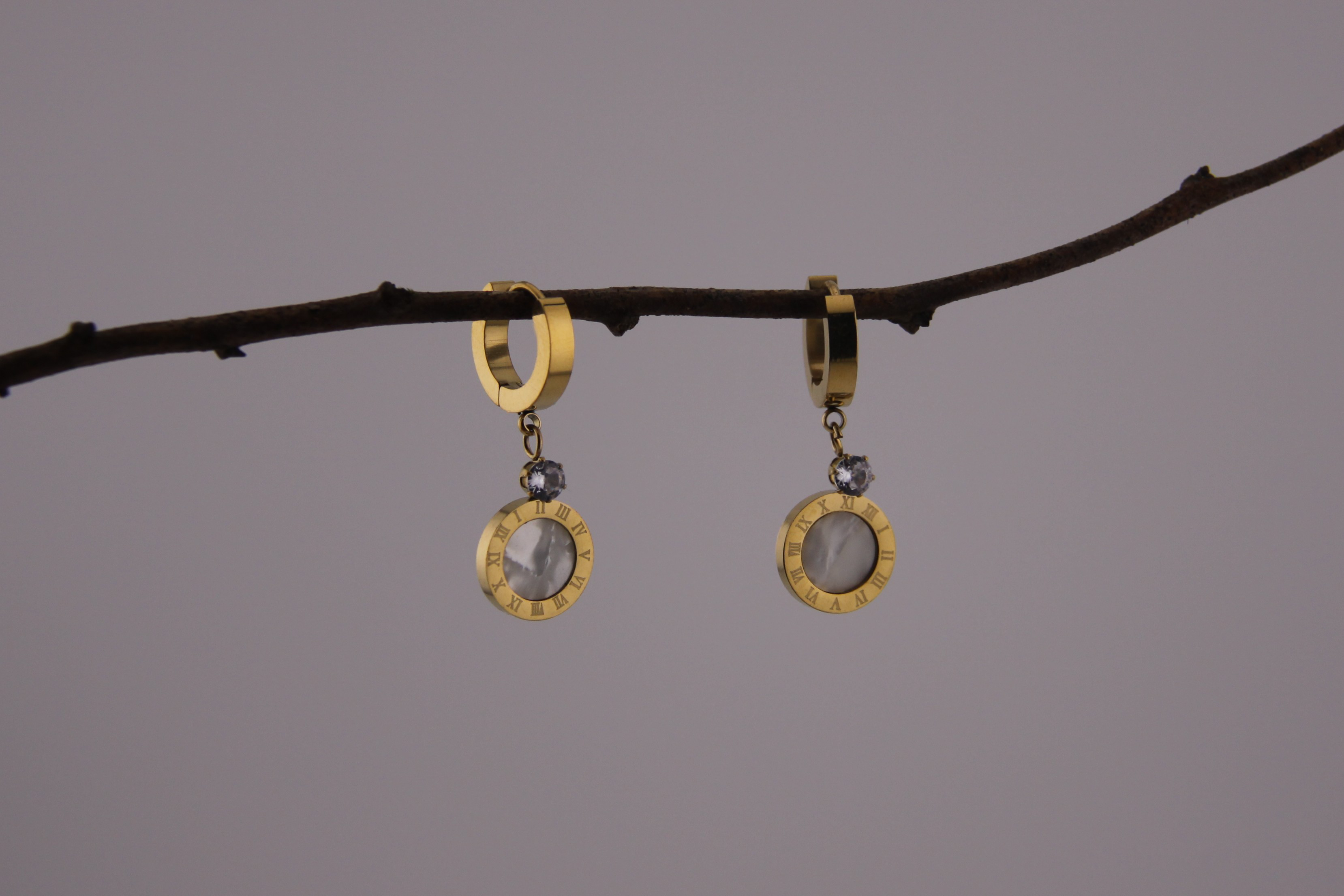 A estrutura dourada delicada é complementada por um pendente circular com números romanos, evocando a passagem do tempo, enquanto a pedra brilhante adiciona um toque de sofisticação discreta. Um acessório que combina um design clássico e a versatilidade de poder ser utilizado em ocasiões diferentes.