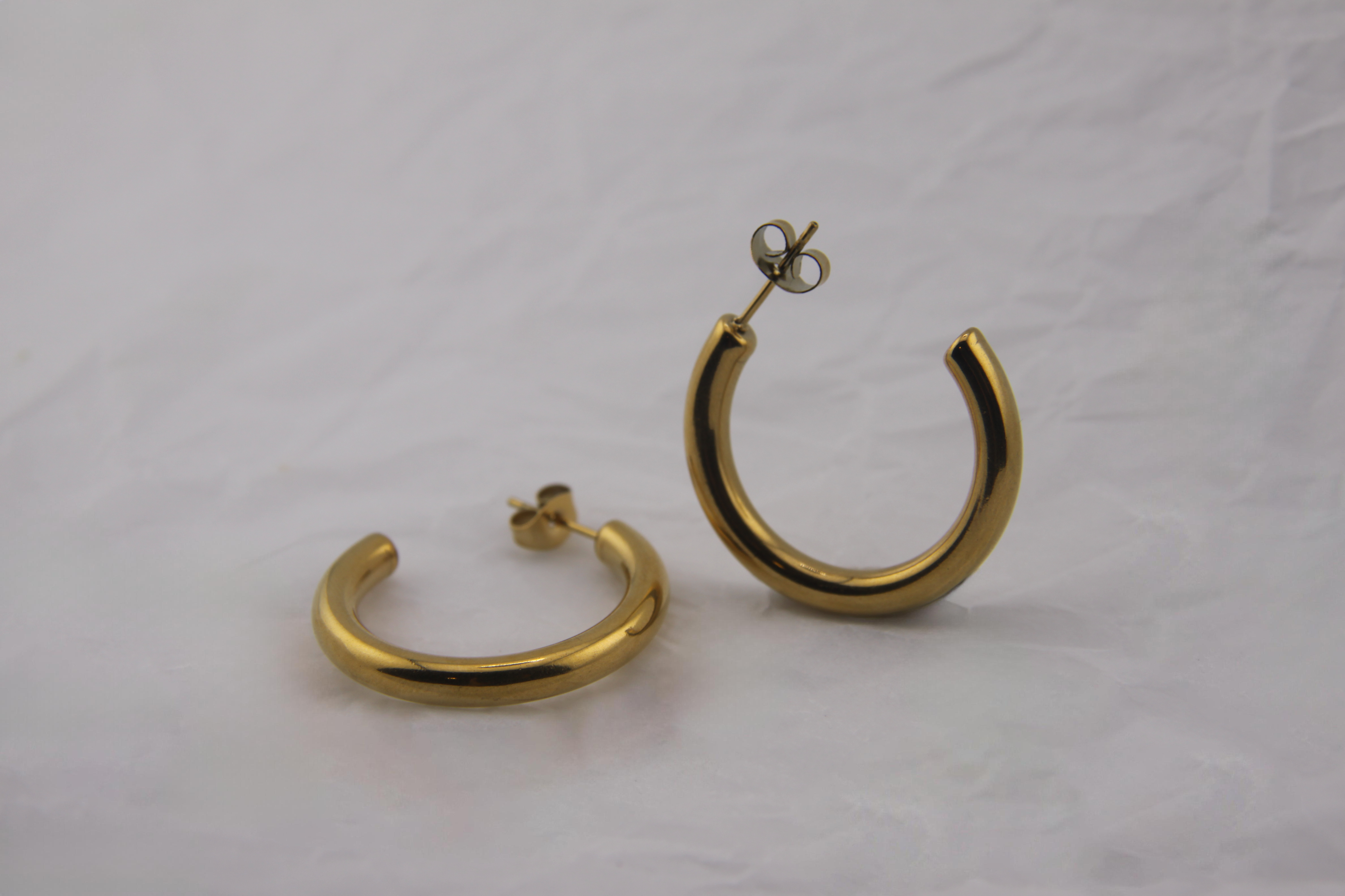 Estes brincos são o clássico reinventado - linhas limpas, formas sólidas e aquele brilho inoxidável que nunca sai de moda. Simples, mas com presença, funcionam perfeitamente do escritório ao jantar. Estão disponíveis em vários tamanhos para se adaptarem ao teu estilo e mood, sejam discretos ou mais audazes. A sua simplicidade faz deles uma peça intemporal e fácil de combinar com outras joias.