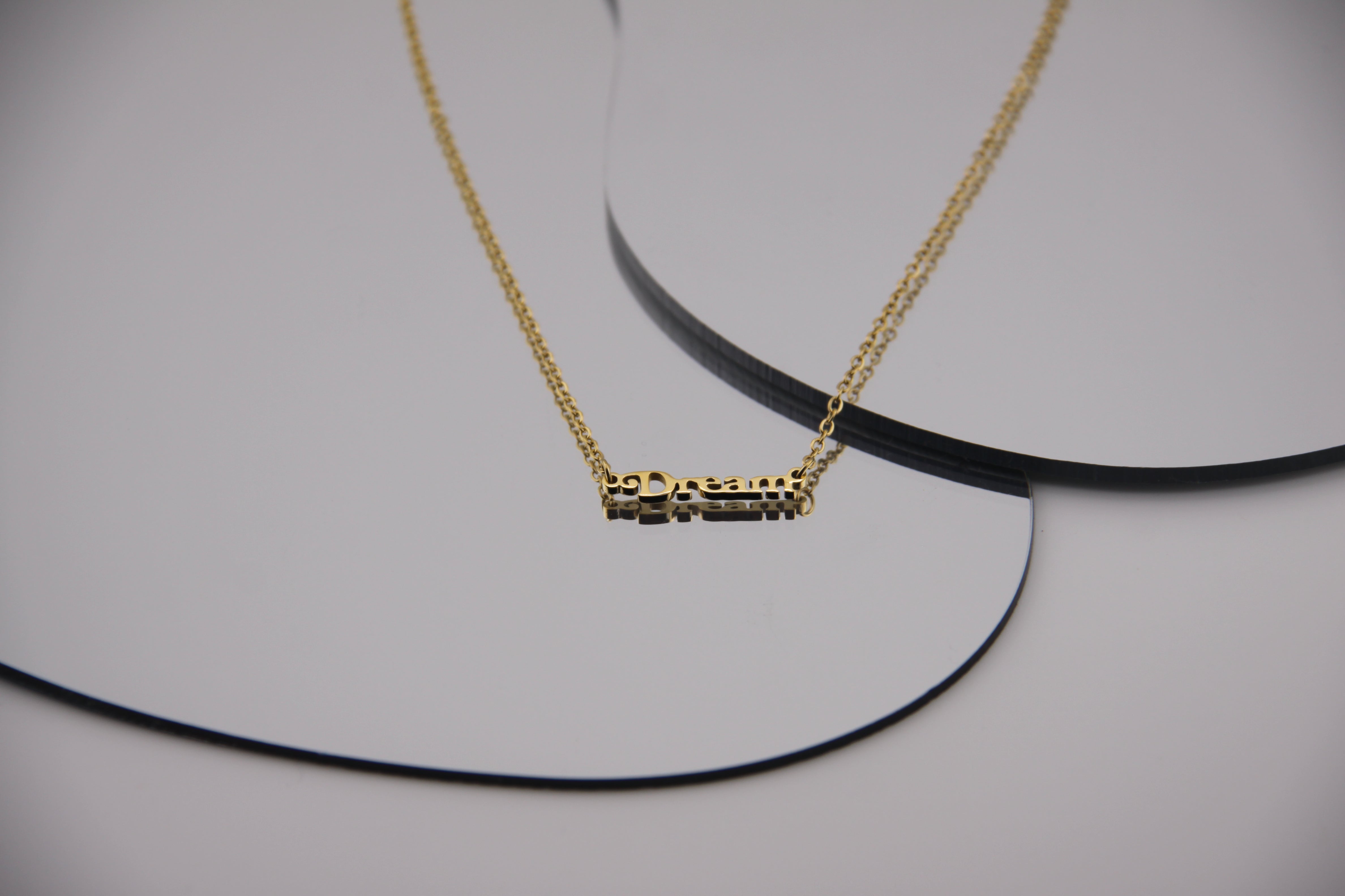 Este colar em aço inoxidável dourado traz a palavra “dream” em destaque, como lembrete constante para nunca deixares de sonhar - seja alto, longe ou com o coração. Discreto, leve e cheio de significado, é o acessório ideal para quem vive com propósito e não se contenta com o óbvio.